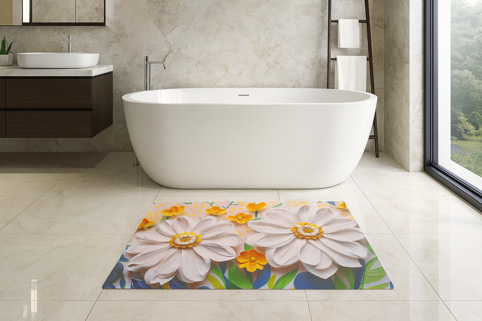 🏡 Polyvalent & décoratif : grâce à son design floral éclatant, il s’adapte aussi bien en tapis de bain, de cuisine ou d’entrée.